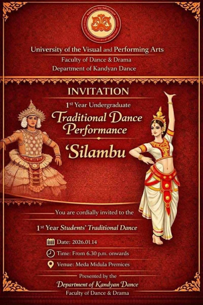 As a cornerstone of the University of Visual and Performing Arts, the Department of Kandyan Dance continues to uphold its mission of celebrating the legacy of Kandyan dance while preparing its graduates to excel in the dynamic fields of performing arts, cultural advocacy, and creative industries.