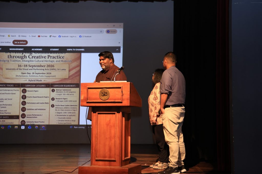 Performance at the official launch of the CFP of the UVPA Praxis 2026 at the University of the Visual and Performing Arts on 2nd April . Performed by Senior lecturer Buddhika Ranawera and the team.